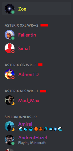 If we have a role for each category the right column with the people online is going to be a mess i think