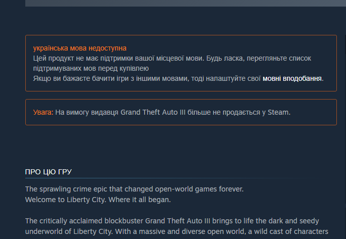 it's the message of the original GTA 3 on steam telling you that this item isn't sold anymore